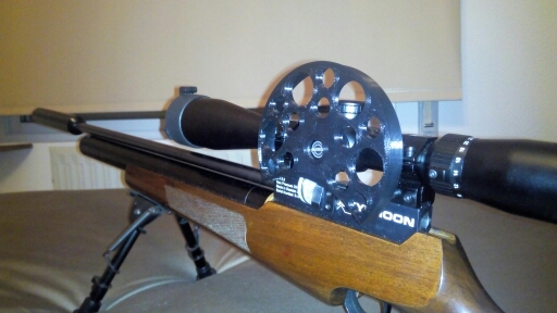 Rueda de 120mm desmontable del visor sin herramientas. Está compuesta de dos partes, una que se fija al visor como las ruedas normales en la que encaja la rueda de paralaje, la cual se fija con dos gomas en posición. Se entrega con los espárragos de métrica 3.