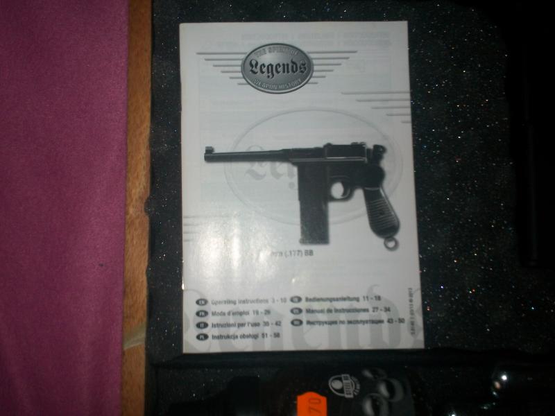 vendo pistola Mauser C-96 cal 4.5 BB de Umarex,la corredera retrocede en cada disparo para montar el percutor,cargador con capacidad para 18 bolas de acero,solo he gastado 3 capsulas de co2,esta impecable ecepto por el plastiquito que cubre la parte interior de la palometa que aprieta la capsula de co2,se partio y la cubri con nural,no se nota y no afecta para nada a su funcionamiento,la entrego con 2 capsulas de co2 y biberon de bolas BB de acero de la misma marca,ademas con caja de madera con esquineras y cierre dorados y acolchado interior