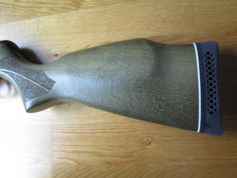 • Culata de madera de haya vaporizada, ambidiestra y tintada en verde.