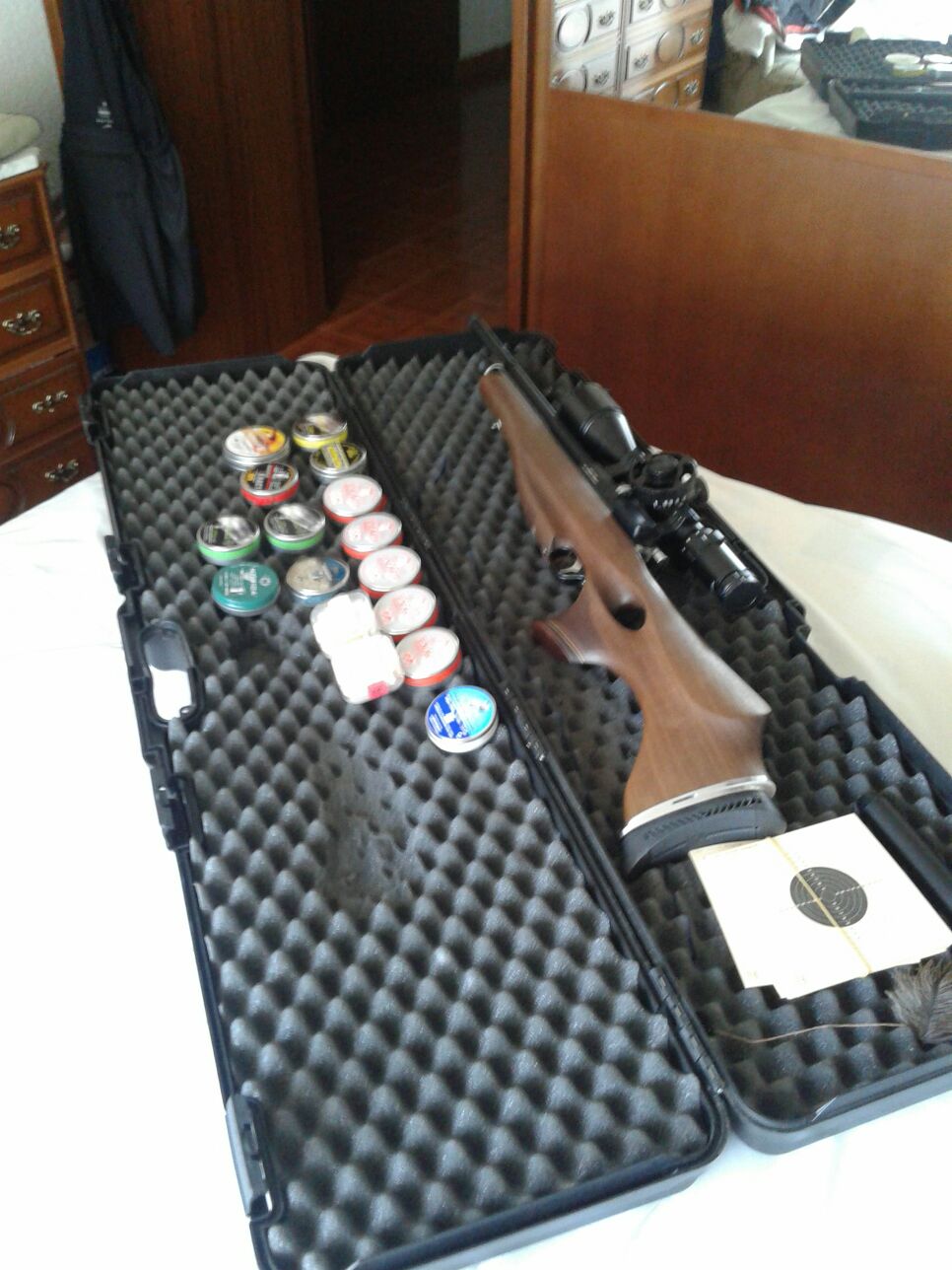 Daystate MK4 thumbhole en calibre 4,5 mm. La compré en 2011 y conservo su factura original y todos sus papeles. Habrá disparado 4000 tiros aprox. (8 latas de perdigones). Nunca ha sufrido un golpe y no tiene ni un arañazo. La precisión del arma es la que se puede esperar de la misma. No me gusta hacer esto porque la gente no lo valora, pero como quedó tan bien y no quiero hacer a mi padre desmontarla, la carabina se iría con la culata regulable de Rowan Engineerin. Las dos potencias de la carabina son, dependiendo del perdigón, 21 julios en baja y 5 más en alta. Como más precisa es, es con JSB Exact Heavy y baja potencia. Precio 1050€.