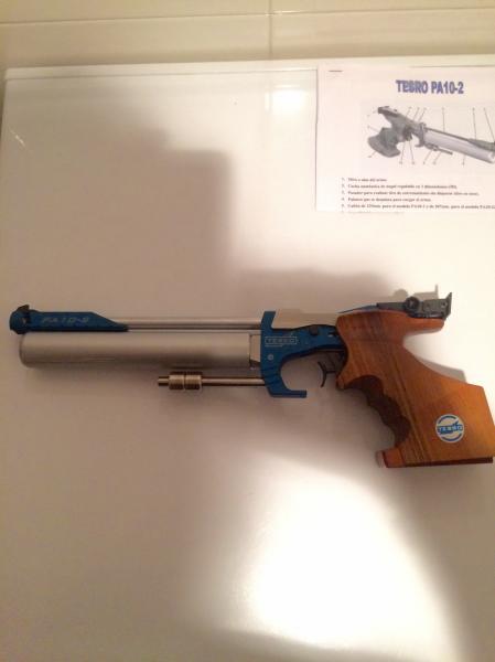Vendo esta preciosa pistola neumatica de la prestigiosa marca alemana TESRO, modelo PA10-2, calibre 4,5. Se entrega en su maletín original, con su libro de instrucciones, una bombona de aire, válvula de llenado y útiles de limpieza. Está en muy buen uso, y funciona perfectamente. Tiene el disparador y las miras totalmente regulables, gatillo suave y preciso, con un poco de práctica, se pueden conseguir unas puntuaciones asombrosas. Precio nueva 1.300 euros, esta usada 690 euros gastos de envio incluidos.