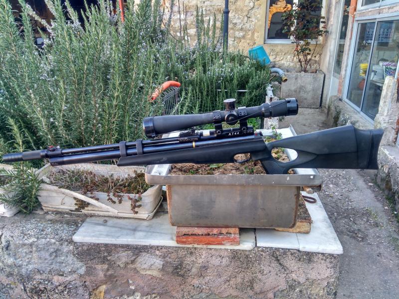 Vendo esta AT44 monotiro, con regulador Lobo, y un moderador de sonido que es un apaño de otra, no la deja muda pero funciona, el visor con paralaje lateral.