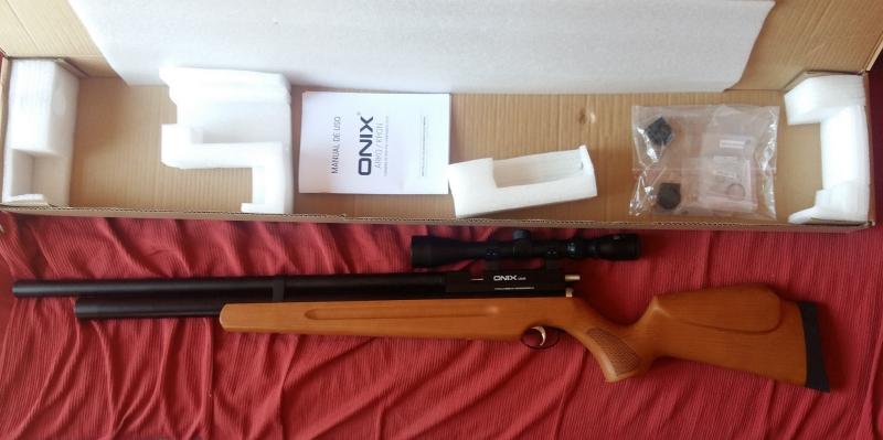 Vendo carabina PCP marca ONIX modelo KRON MULTITIRO del 4,5 con un cargador multitiro adicional, y visor 4x32, esta carabina es regulada, está impoluta y totalmente nueva ya que se compró el 09/08/17, se habrán pegado apenas unos 50 tiros. Precio 350€ envío incluido.