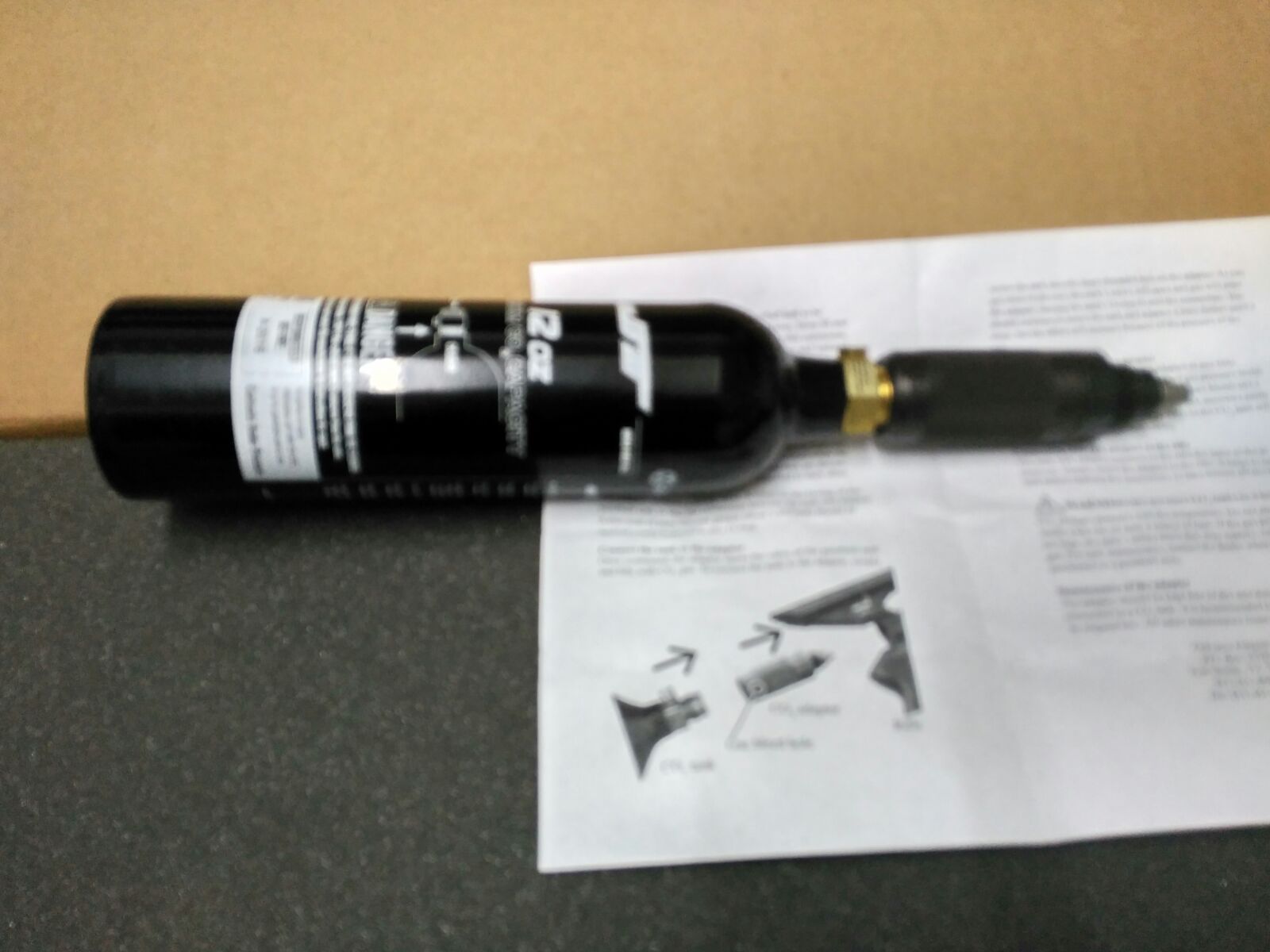Adaptador y botella de CO2. Menos potencia pero muchos muchos disparos. VENDIDO
