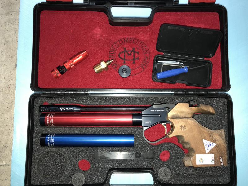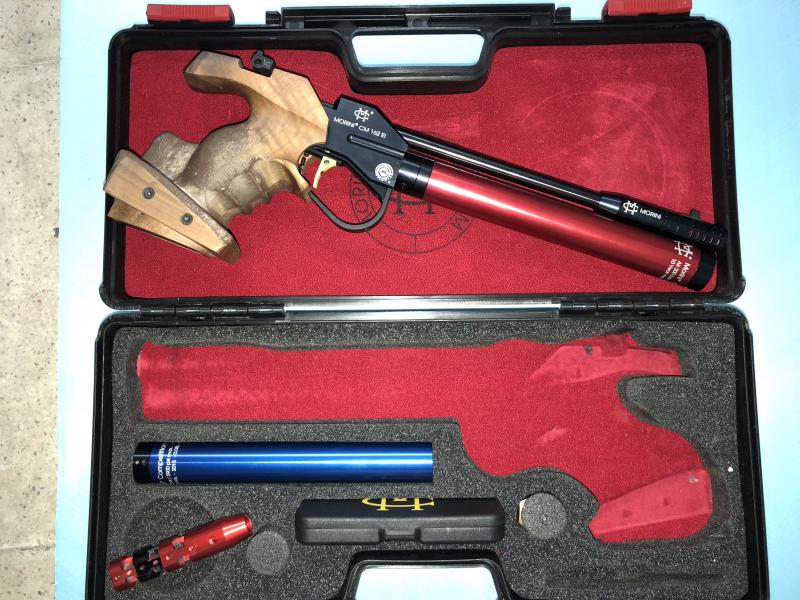 Buenas a tod@s, vendo mi MORINI 162EI, el arma fue comprada a CHANO en enero de 2016, tiene disparador electrónico alimentado por dos baterías AAA, cacha de talla M tocada como se puede ver en la foto, dos botellas con año de timbrado 2015, viene con todas las herramientas, racor de carga y roscado de descarga, libro de instrucciones con la tarjeta de agrupación de cañón, a mayores un compensador de boca bicolor como podéis ver en la foto, todo junto y puesto en tu casa por 1350 € negociables, un precio ajustado teniendo en cuenta el tiempo del arma, su uso y teniendo en cuenta que su precio original de venta como sabéis es de 1750 € sumándole a eso el precio del compensador que es de 120 €, animaros, es un arma espectacular, la vendo porque he adquirido una compact por problemas musculares.
