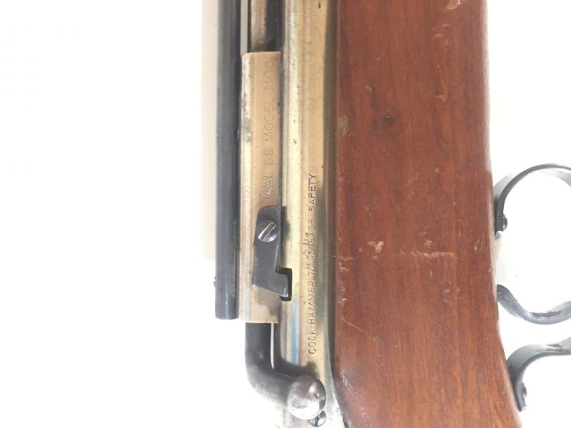 Se vende carabina de 1958 Benjamin modelo 3100 calibre 4.5 solo admite BB tiene un cargador de 100, es por bombeo.