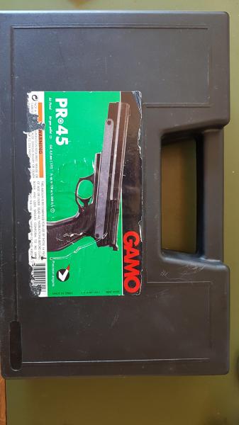 se vende pistola gamo pr 45. Es casi igual a la compact, pero tiene la empuñadura ambidiestra y el gatillo no es regulable en posición. esta en muy buen estado y es ideal para iniciarse en el tiro a 10 metros por poco dinero, antes de pasar a cosas mas caras. viene en su maletín original, la etiqueta está un poco rota, porque se mojó un día de lluvia.