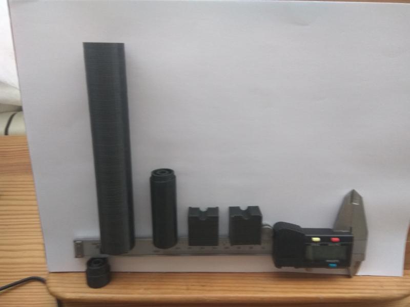 La siguiente prueba la he realizado con un silenciador HW de fábrica (con rulos, fieltros y anillas) en una P15 también del 5,5 que para la prueba la he puesto muy alegre (unos 40 meses) me ha dado 76 decibelios. He sustituido los rulos, fieltros y anillas por los nuevos deflectores (son 8 integrados en una sola pieza de 15 cm de longitud, aunque se puede hacer del tamaño que se desee). Me ha dado una medición de 74 decibelios.