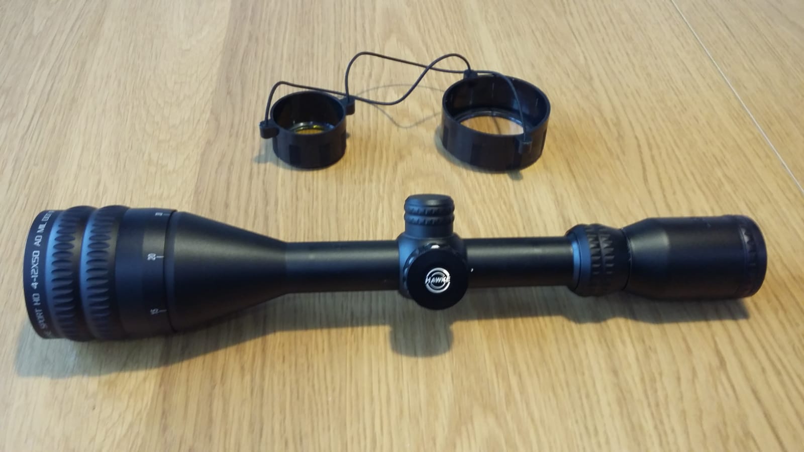 Vendo este visor de la marca Hawke, es un modelo de paralelaje frontal que enfoca bien desde los 5metros, con aumentos variables de 4x a 12x y campana de 50mm. Tiene retícula Mil-dot muy muy finita. Características: