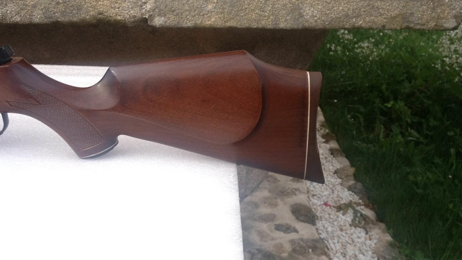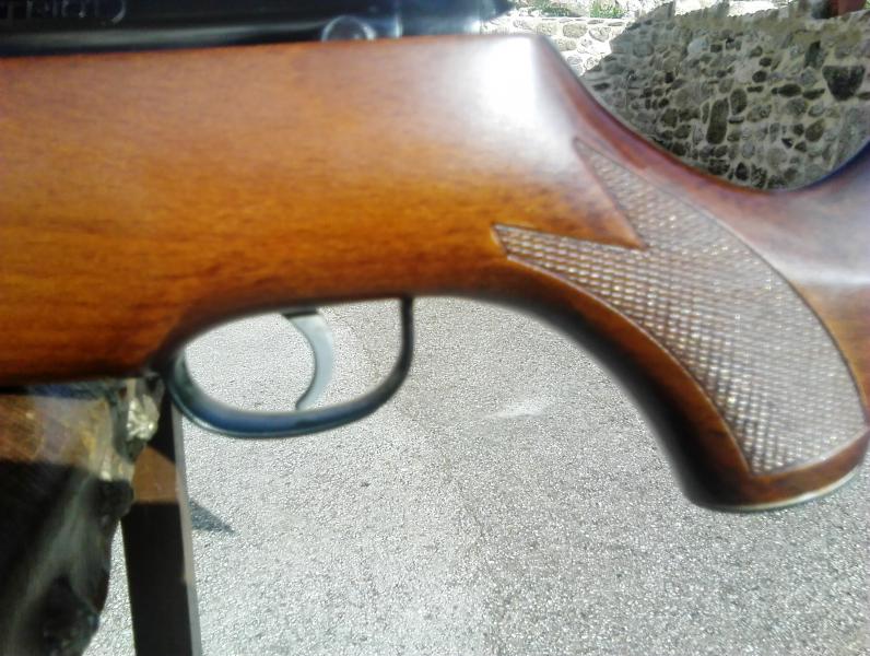 Ni una marca. No se.ha.usado practicamente. Se le.nota en todo. Madera, pavón reluciente y azulado, brillo, dureza de carga...