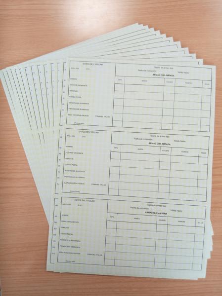 Vendo tarjetas de armas en impreso oficial para el registro en el Ayuntamiento de armas de 4ª categoría.