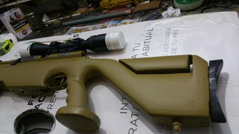 Hola . Vendo esta carabina pcp hasan , at44 monotiro , tal cual se ve en las fotos , ! SIN VISOR , NI GRIP ¡ , esta recortada cañon y deposito y tocada mil veces , fue bullpup en 3 o 4 configuraciones diferentes pero funciona correctamente , la vendo en 150€ envio incluido por TIPSA economi .