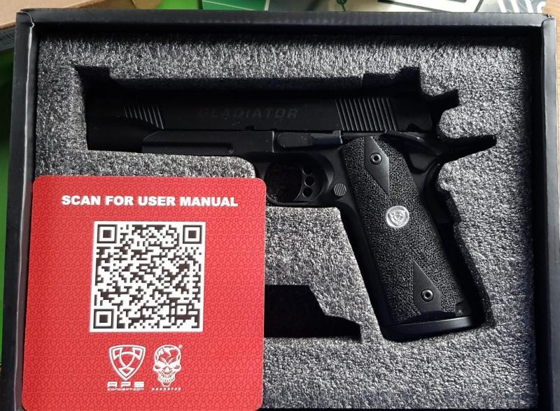 PISTOLA APS 1911 GLADIATOR GAS NEGRA CAL6MM BLOWBACK AIRSOFT PISTOL – MARCUX COSTO 120,00 EUROS Y SE DEJA EN 100,00 EUROS Y SE REGALA BOTELLA DE GAS GREEN GAS ZASDAR 750ML QUE COSTO 12 EUROS