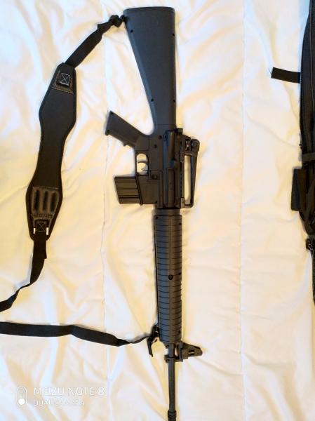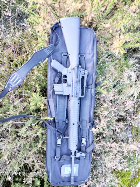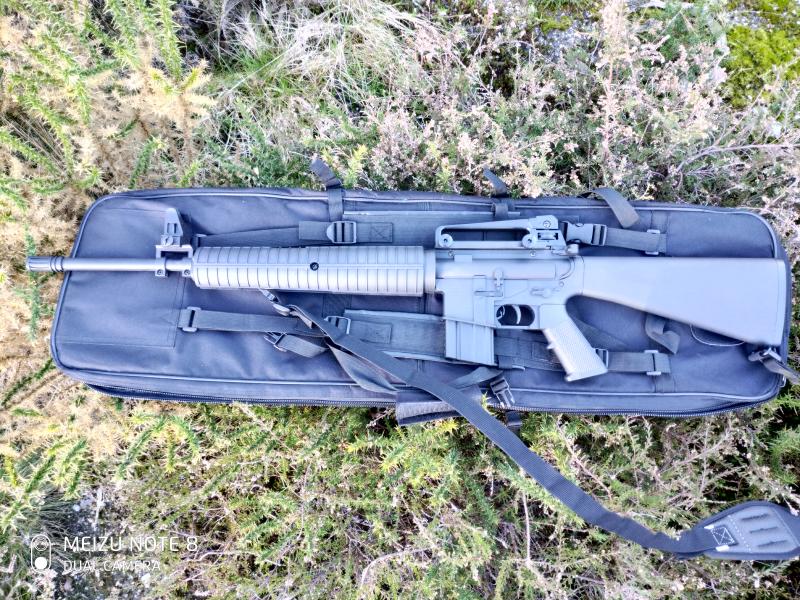Carabina potente y cortita, réplica del M16 con sus mismos elementos de puntería, gran calidad. Sorprendente precisión una vez afinado su gatillo con un tornillo de regulación más largo, otros tornillos principales de la culata han sido sustituidos por otros de mayor dureza e inoxidables. Se entrega en su caja original y los tornillos de serie, la correa portafusil también está incluida. La funda que la acompaña tiene diferentes compartimentos para guardar munición o blancos y algún trapo para limpiar después de tirar, posee cintas de ajuste y para llevarla como mochila además de tener la posibilidad de albergar carabinas más largas debido a que es extensible.