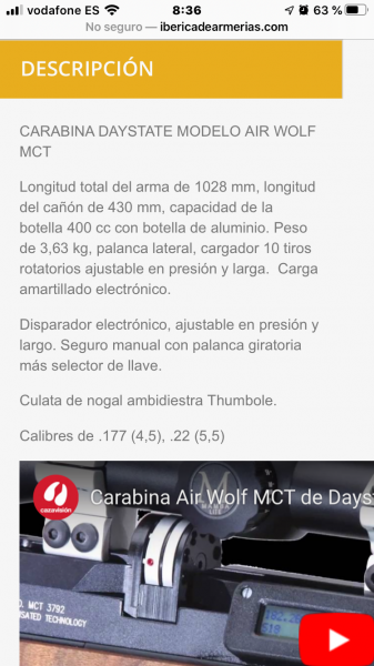 Re: REBAJA-DOS CARABINAS DAYSTATE AIRWOLF MCT de 4,5 y 5,5