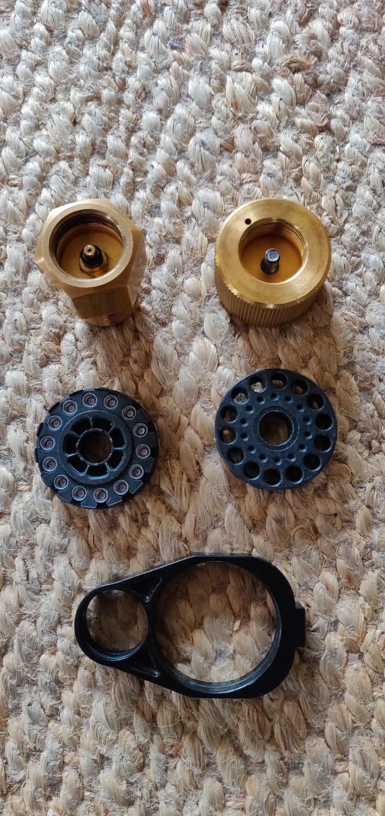 En la foto se ve la pieza suelta que sujeta el cañon, si se quiere cambiar y volver a ponerla, pues ahora lleva la que lo hace flotante.