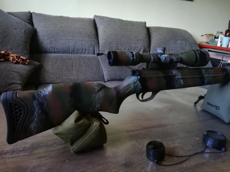 hola a todos, vendo carabina de resorte hatsan 125, pintada camo tiger, venia de fabrica con el muelle fuerte colocado, la pintura exterior es de calidad, especial para armas, se incluye visor gamo MD 4-12x44 AO, pintado a juego y maletin rigido, solo habra tirado 200 balines, estado como nueva