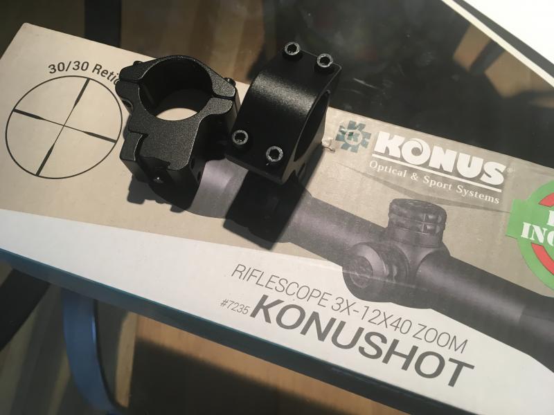 Vendo este visor Konus con anillas incluidas de 1”,solo usado una vez,está en Barcelona,precio 55€ envio incluido.