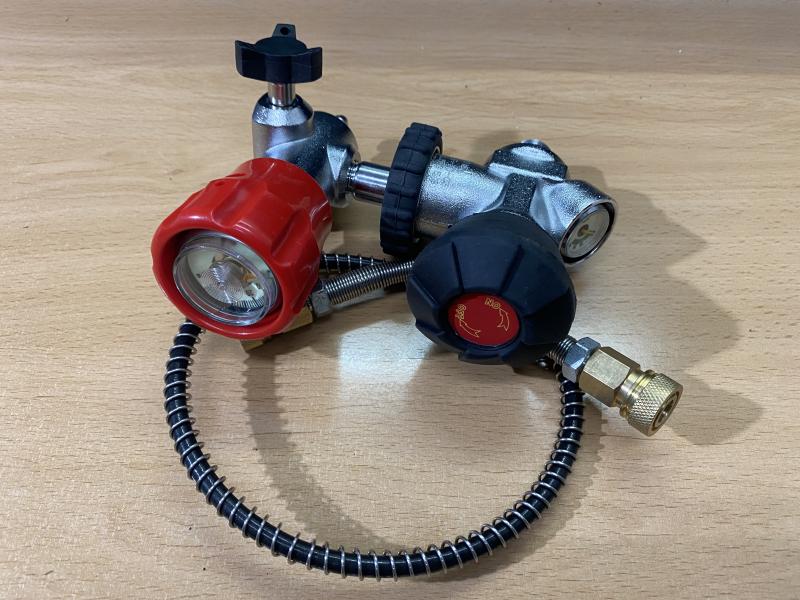 Grifo+ estacion de carga con 2 manometros, purgador y latiguillo, rosca pequeña.