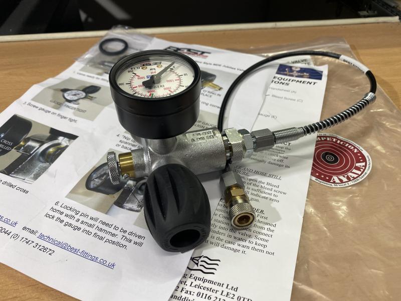 Grifo con estacion de carga de calidad, con purgador, manometro y latiguillo, (todo en 1)