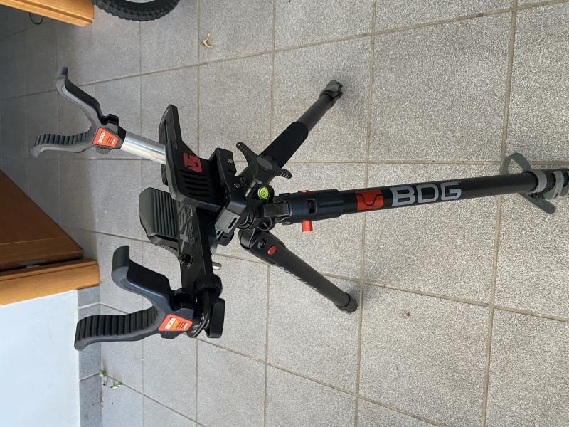 El tripode incluye una bandeja de BOG-POD original para reposar el arma sobre dos soportes, esta bandeja se puede sacar y sujetar el arma con la pinza ajustable engomada que lleva