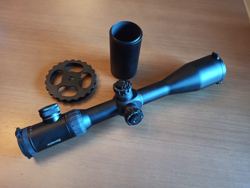 Quiero vender este visor ya que yo hago casi en exclusiva FT y HFT y tengo otros visores más específicos para esas modalidades. Es un Hawke Airmax 4-16x50. Se le ha dado muy poco uso. Tiene retícula AMX iluminada. Viene con rueda de paralaje sobredimensionada de 100mm de diámetro, tapas abatibles metálicas y parasol. No tengo la caja original. Lo único reseñable que tiene es una marca superficial en el inicio del cono que le hizo el anterior propietario al ponerlo en las monturas, pero como digo sólo es superficial, no hay nada abollado ni forzado. El funcionamiento del visor, en lo poco que he probado es perfecto, sin ningún problema.