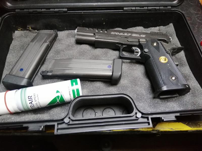 Vendo replica,FULL METAL, pistola HI CAPA 5.1 marca WE con tres cargadores, con desgastes de uso pero correcto funcionamiento.