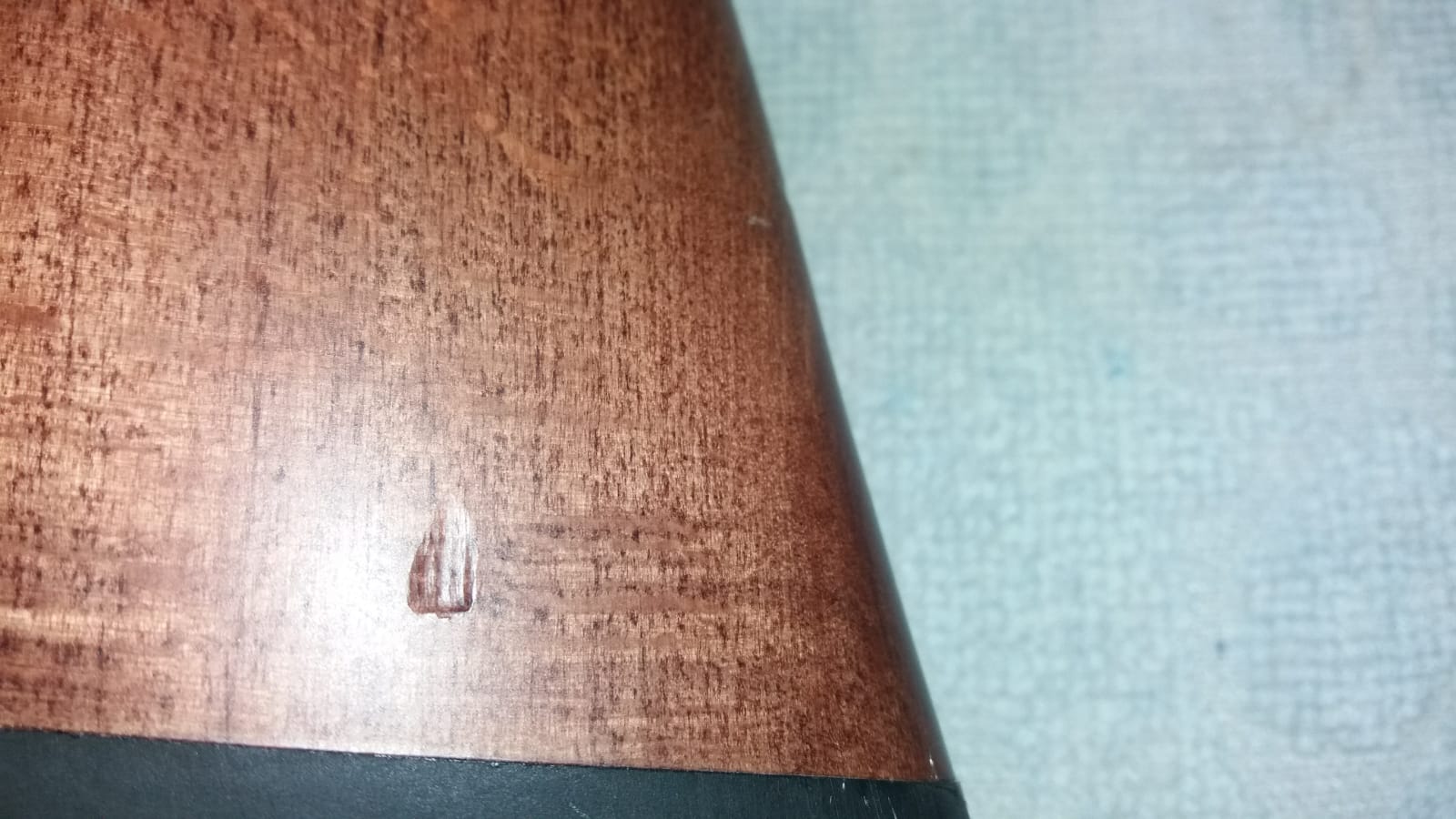 Esas marcas si no le falta madera tienen facil solución, echale agua con la punta de los dedos hasta llenar el hueco, luego un paño de algodon mojado y doblado encima y le pones la plancha encima hasta que veas que sale vapor, dejas el trapo hasta que deje de salir vapor, si es necesario lo repites hasta que por magia el bollo desaparece por que se mee vapor y lo levanta. Asi de facil, si son maderas con barnices no funciona y marcas el barniz dejandolo peor.
