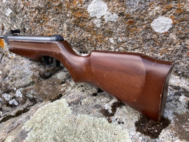 Lo dicho, vendo mi primera carabina, una Gamo Cadet S comprada en 1989, calibre 4.5, el estado es bastante bueno, pero sin duda no de colección, podreis apreciarlo en la fotos. Cañon con algo de oxido exterior, pero el interior limpio, madera con alguna marca, y daño en el remate plástico posterior del cañon, sólo debe ser un embellecedor ya que no aprecio ningún problema al disparar, me parece que conserva bastante potencia, y de la precisión no puedo hablar ya que me falta práctica, mucha. Con seguro en el gatillo. También entrego "visorcillo" norika de 4x15 de la misma época. Puedo enviar más fotos.
