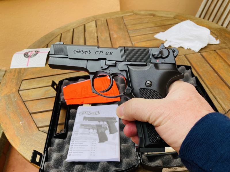 Por no hacer uso de ella, con la cual he tirado poquísimo, me vendo la pistola Walther CP 88, con 2 cargadores de 8 balines, estuche e instrucciones. Esta en perfectas condiciones.
