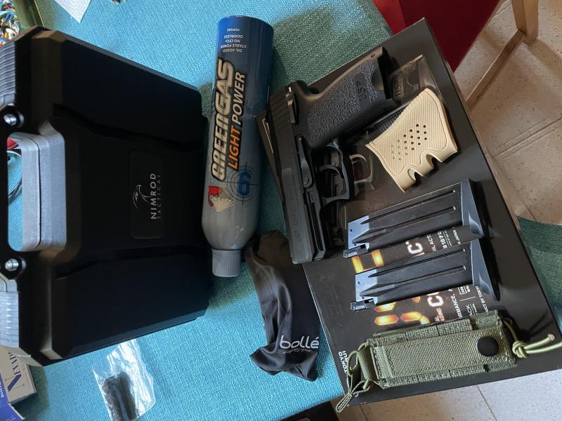 Pues eso , Tokyo Marui USP compact con cargador extra , gas , bolas , maletin , grip , gafas y funda mole para cargador . Todo valorada en 230€ lo dejo en 150€ puesto en casa .