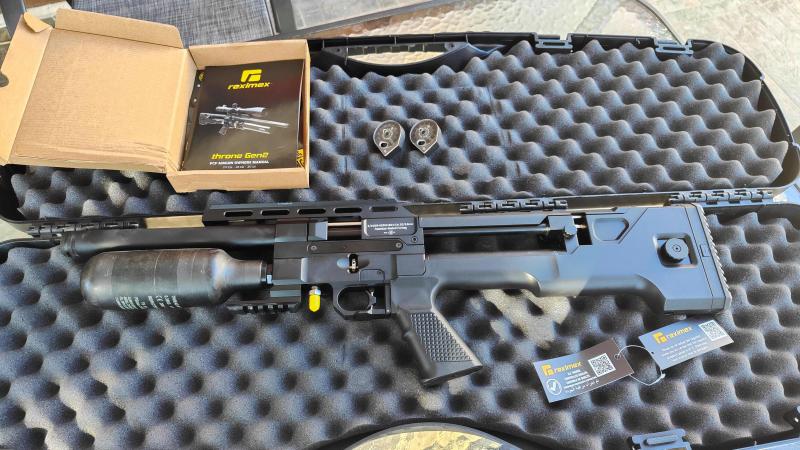 Se vende carabina REXIMEX THRONE GEN2 Compact, practicamente nueva, comprada en Agosto 2023 y con la cual se han efectuado unos 100 disparos. Viene con todos sus accesorios ( 2 cargadores, cargador monotiro, juntas toricas ...... ) asi como la factura de compra en Balistas. El calibre es de 5,5 mm.