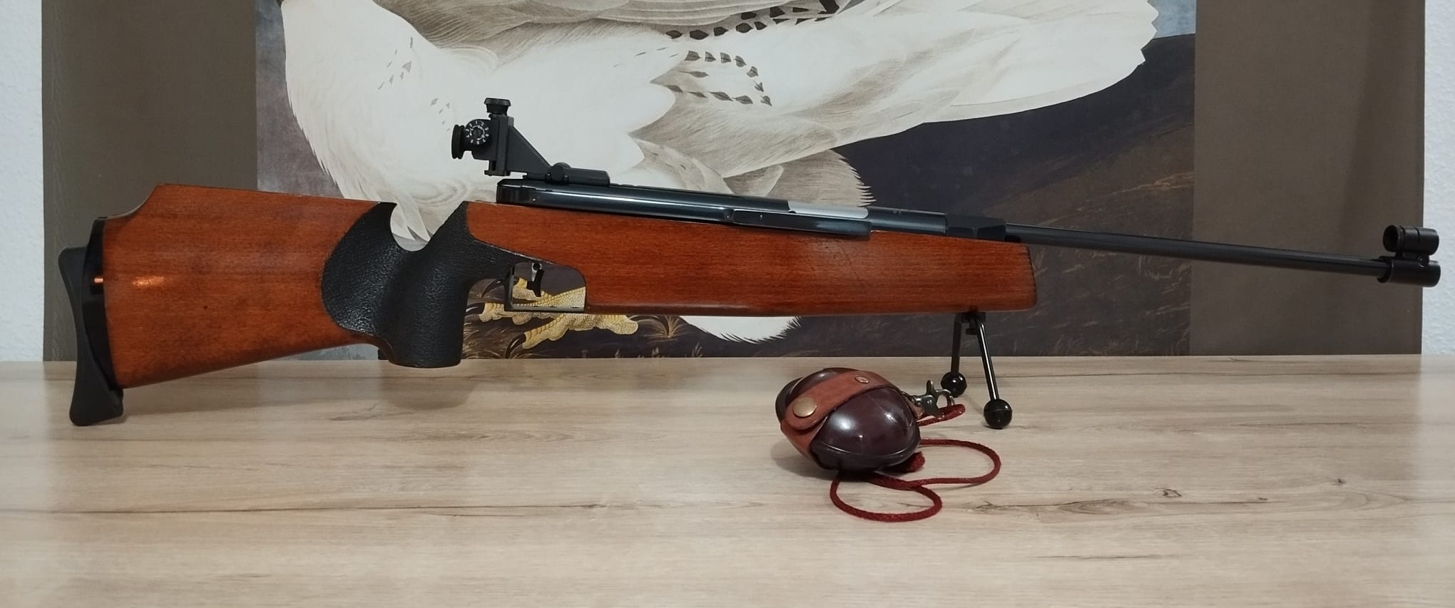 Feinwerkbau 300 S JR, la carabina se encuentra en muy buen estado con signos de uso, la acción presenta algunas marcas superficiales conservando el negro brillante del pavonado en su práctica totalidad, la culata también presenta marcas superficiales, sin grietas, golpes……