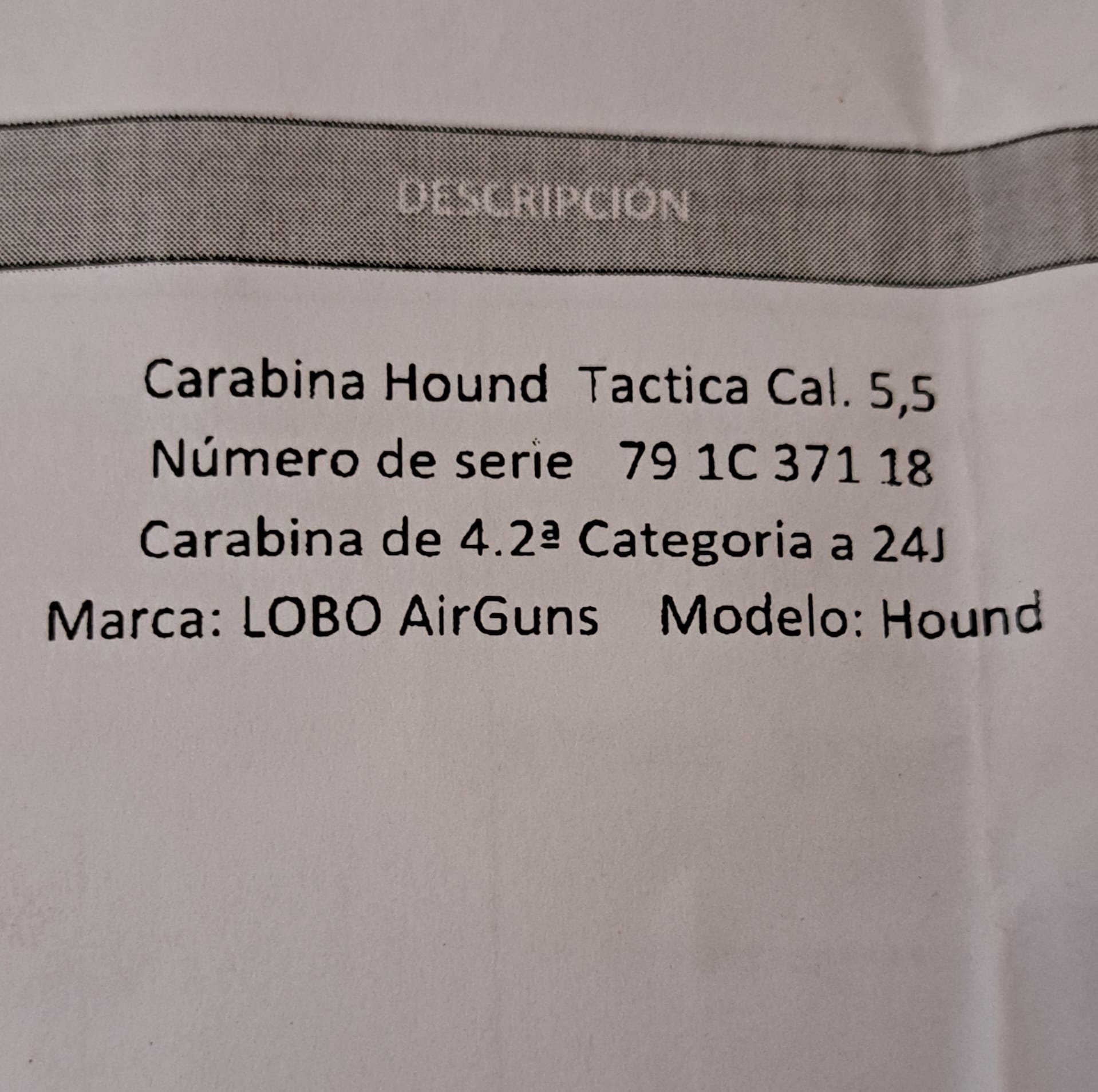 Se vende carabina pcp marca lobo del calibre 5,5 está en perfecto estado muy poco uso con factura , se vende por no usar precio 750 e ,sin visor para más información llamar o guasap al número 677 33 06 83 ramon