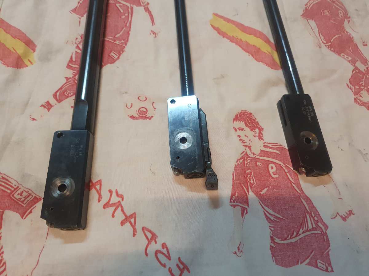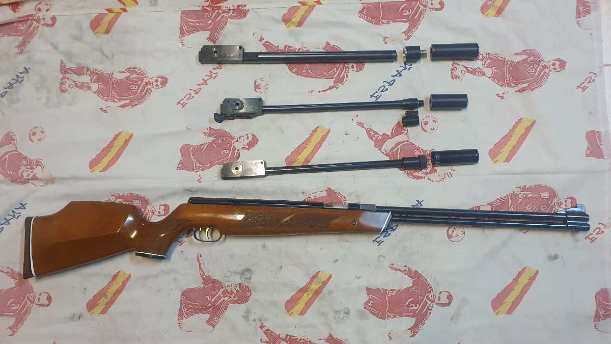 Vendo TODO el conjunto por 400 e. Los portes a medias . Si es TODO el conjunto. ( carabina HW 77 del 5,5 + Tres cañones Weihrauch del 4 ,5 : HW 95