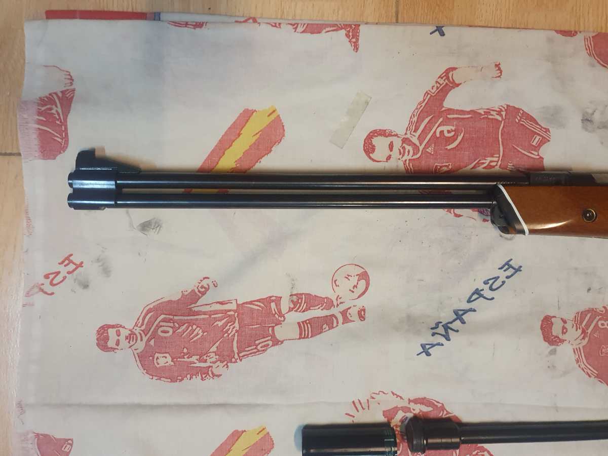 Cañon Weihrauch hw 50. Cal. 4,5. Con rosca para silenciador. Silenciador corto ( mide 7 cm y es CASERO ).