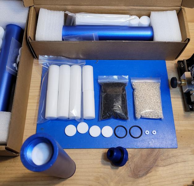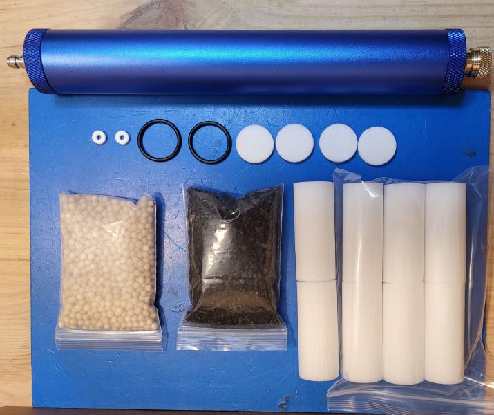 longitud 255mm ancho 37mm grosor 7,7mm. Alta presion, ideal para armas PCP, buceo, paintball, etc. Listo para usar y con repuestos de: filtros desecantes, filtros de algodón, tamiz molecular (zeolita), carbón activado, O-rings (anillos) de repuesto. Personalmente lo uso para llenar la botella de buceo y es una maravilla aire limpio sin humedad ni aceites ni olores. El mejor cuidado para tu depósito PCP. Peso del filtro 573g. Conexiones estandar de 8mm. Nuevo a estrenar. Dispongo de varias unidades.