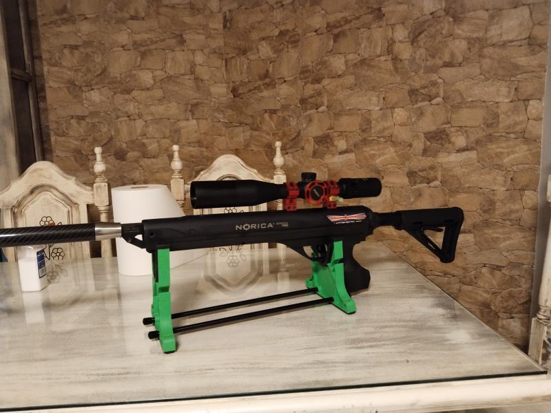on enfundado en fibra carbono 30m.m. gatillo ajustado a 600g. Muy precisa ,0 retroceso se puede ver y probar si eres de Sevilla ,precio negociable..Re: Norica Onmia ZRS.