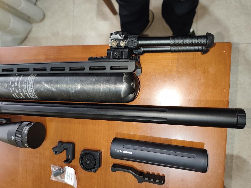 Cargador 16, cargador monotiro, rail arca, llave regulador , supresor BioHazard. Y visor de 36 aumentos fijos, bípode disponible , todo nuevo .