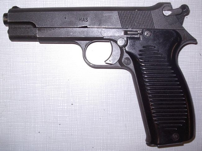 Y como siempre la excepción que confirma la regla, una pistola SA con seguro en la corredera, la M1950 francesa (que al menos hace cinco años seguían usando)