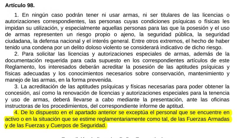 Compañero, esto es lo que dice el artículo 114 del Reglamento de Armas: