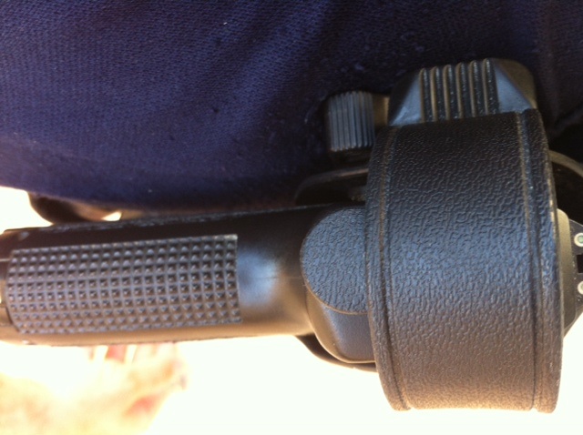 Aquí os dejo el invento de la funda hecha a medida para HK USP COMPACT y módulo laser/linterna streamlight tlr-4. Es algo ancha pero muy cómoda. El arnés del cinturón se puede poner pegado o utilizar otros que queden más separados del cuerpo.