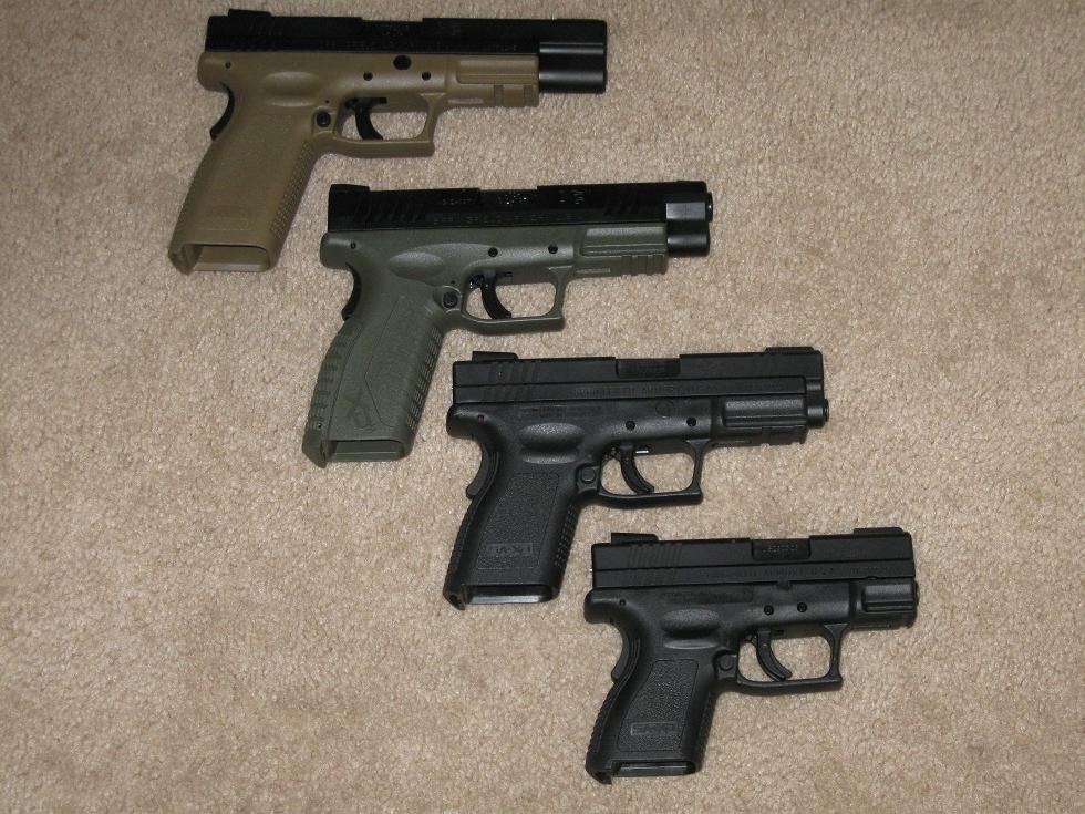 En la foto, una SIG Sauer P245, Springfield XD, Springfield Mil Spec 1911 y la Glock 17. Nos puede gustar o no, pero solo como metafora:
