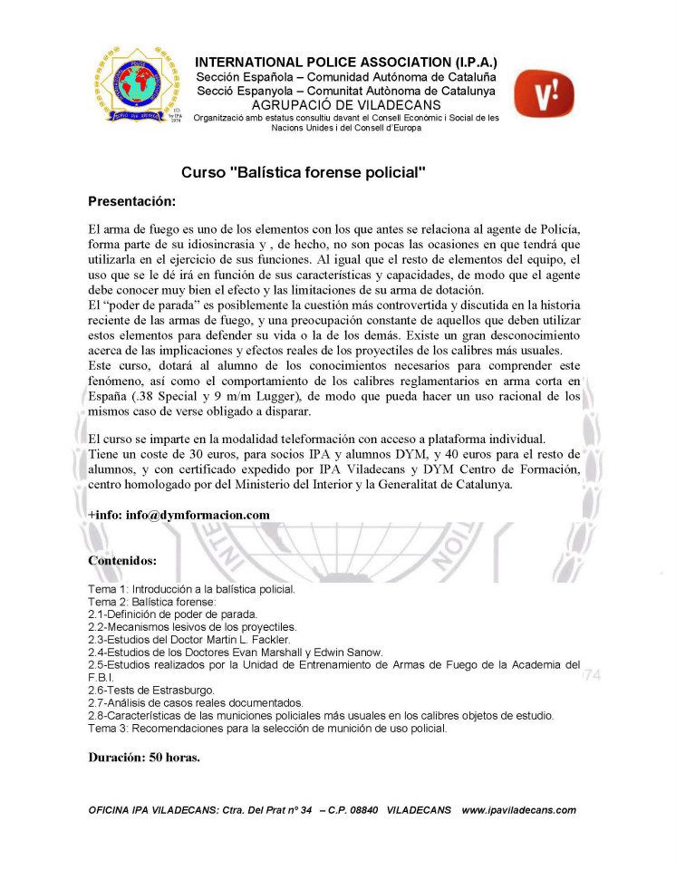 Curso de balística policial on-line, impartido por D y M centro de formación e I.P.A. Viladecans.
