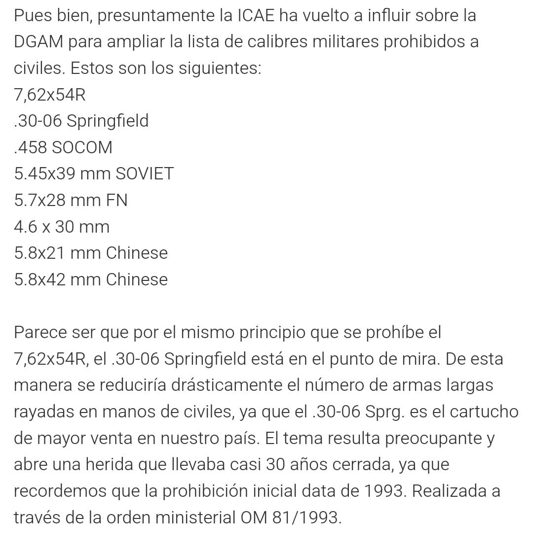 Muy buena aportación, ahí se explica mas al detalle la situacion, aunque todavía deja la puerta abierta a que en cualquier momento se incluyan otros calibres por el Ministerio de Defensa....