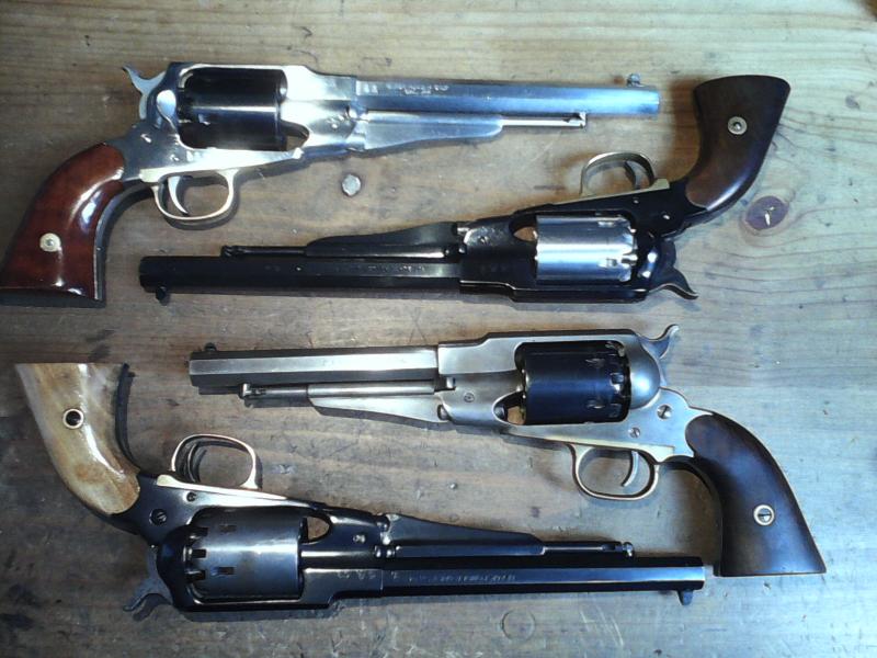 En la foto, Uberti con cilindro de Euroarms, debajo a la inversa, debajo Pietta (cal. 36) con cilindro de Sta. Bárbara y debajo a la inversa