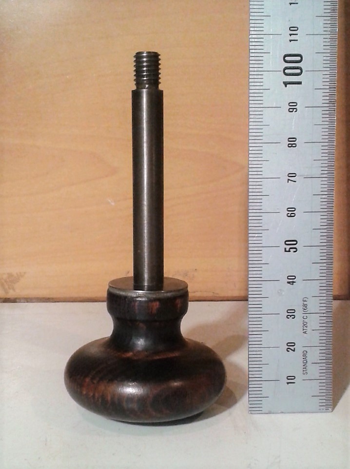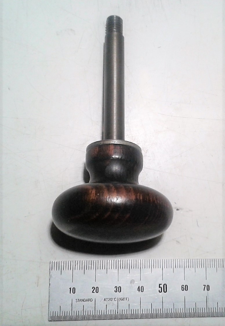 El pomo es de madera de haya acabada al aceite y el tallo es de acero pavonado.
