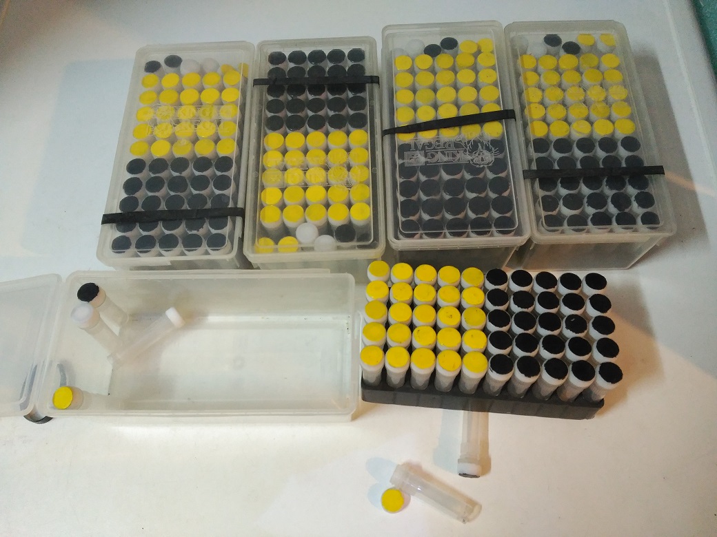 Necesito hacer sitio en el armario. Vendo estas cajas con tubos monodosis de cuando tiraba cortas. ESTAN USADAS. En cada tubo caben 30 gn de suiza 2. Tengo las cinco que se ven en la foto. En cada caja 27 tubos de cada y dos de recambio. Tapones a rosca.