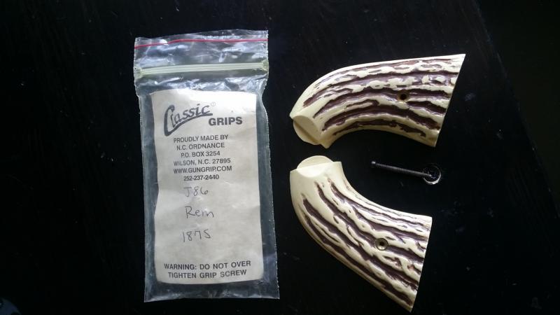 Se venden estas cachas para el revolver Remington 1875. Son de plastico en imitacion a hueso. Las compré en USA y se fabricaron alli. En mi uberti outlaw 1875 encajan a la perfeccion.