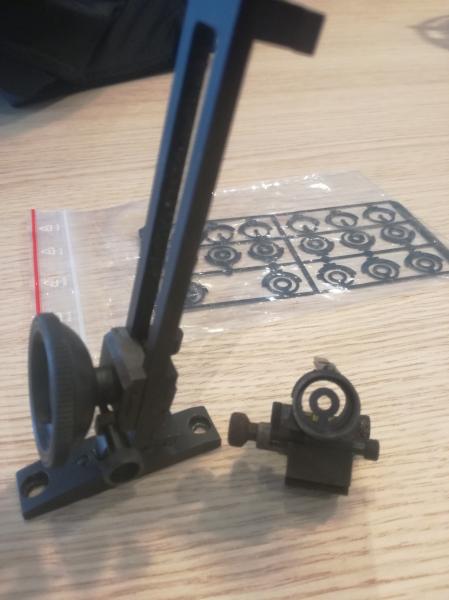 Los quité de un rifle gibbs y no les doy uso.Los vendo en conjunto por 200 euros con un juego de insertos que compré a parte.Son un diopter Pedersoli English y un tunel con nivel y regulación lateral ref.USA-457.Un saludo.